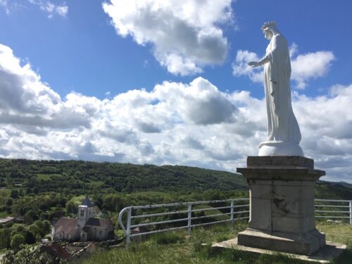 En 2026, le village de Saint-Laurent-la-Roche, surplombant la plaine de Bresse, célèbre le centenaire de la réinstallation de la statue de la Madone sur son belvédère.